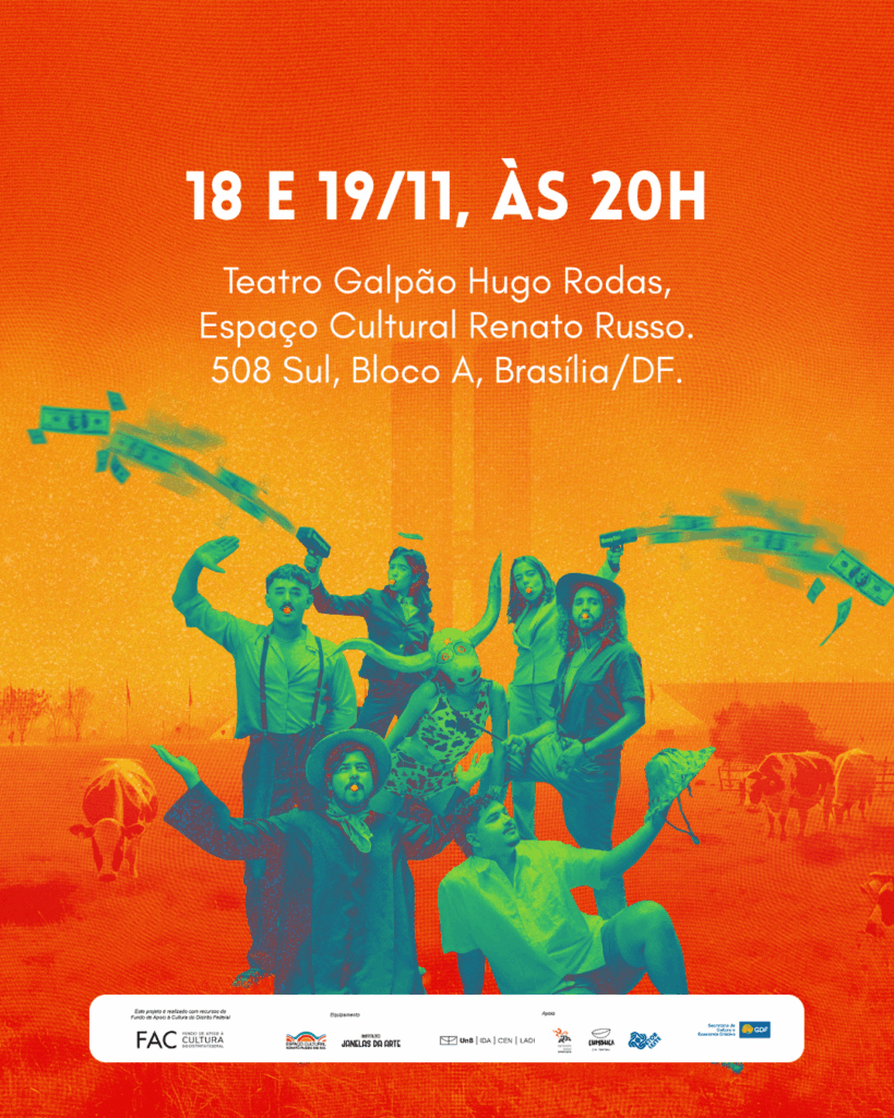 Por meio de cenas performáticas e carnavalescas, o espetáculo critica, brinca e poetiza diversas relações de poder. Estilos característicos do dramaturgo Marcus Mota e do diretor Flavio Café, que assinam a ficha técnica e trabalharam durante anos com o multiartista Hugo Rodas. A obra traz uma narrativa não linear sobre dinheiro, gana e poder.